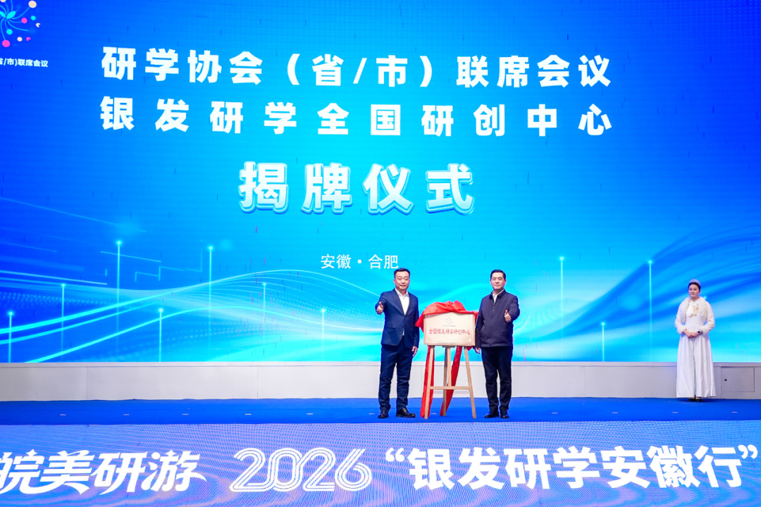 启动仪式上,研学协会(省/市)联席会议秘书长吉利,安徽省文化和旅游产业促进会副会长、研学旅行工作委员会会长孙辉共同为全国首家“银发研学研创中心”揭牌。该中心系致力于打造集理论研究、课程研发、人才培训和标准制定于一体的综合性创新平台,为银发研学产业发展提供智力支撑和示范引领。